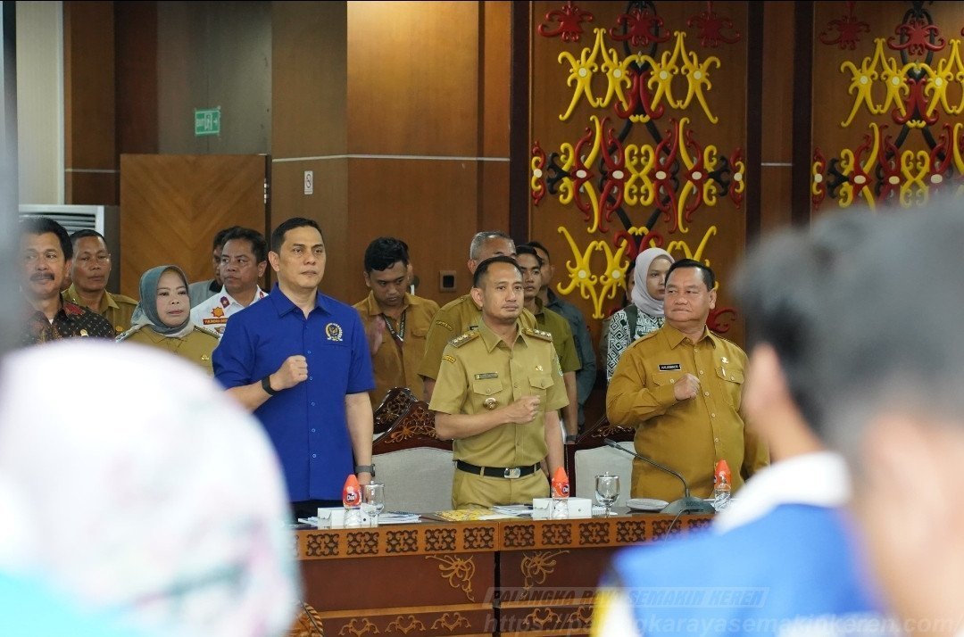 PALANGKA RAYA SEMAKIN KEREN – Palangka Raya, Wali Kota Palangka Raya, Fairid Naparin menghadiri rapat kerja bersama Komisi V DPR RI yang digelar oleh Pemerintah Provinsi Kalimantan Tengah di Aula Eka Hapakat, Kantor Gubernur Kalteng, Senin (14/04/2025). Kegiatan ini menjadi ajang penting dalam mendorong pembangunan infrastruktur yang berkelanjutan di wilayah Kalimantan Tengah.