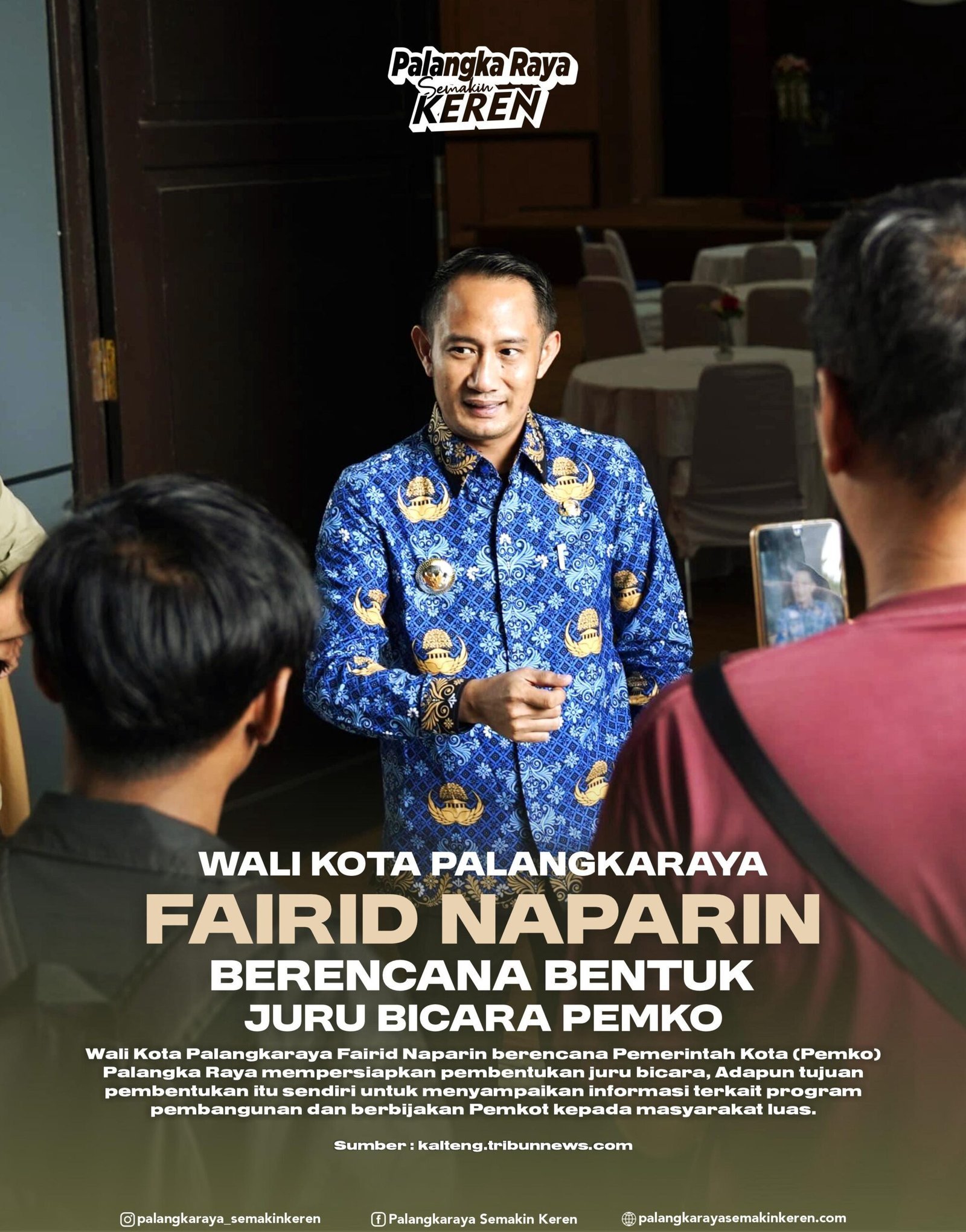 Pemerintah Kota Palangka Raya terus berupaya meningkatkan transparansi dan efektivitas komunikasi dengan masyarakat. Salah satu langkah terbaru yang diwacanakan oleh Wali Kota Palangka Raya, Fairid Naparin, adalah pembentukan Juru Bicara Pemerintah Kota (Pemko) Palangka Raya. (27/3/2025)